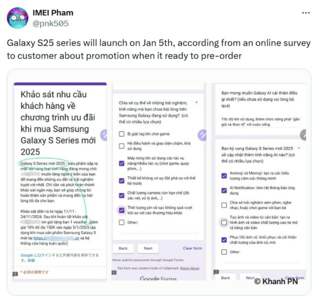 갤럭시S25 시리즈에 관심 있는 사용자 대상으로 진행된 설문조사에서 갤S25 시리즈의 공개일이 공개됐다. (사진=엑스 @pnk505)
